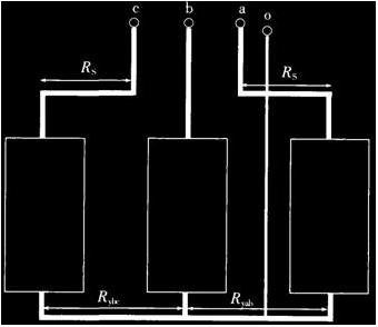 眾所周知,測景直流電阻的目的是驗證繞組和引線的材質(zhì)及焊點質(zhì)量的好壞,而三相電阻的不平衡率主要是檢驗引線焊接的質(zhì)量和開關、套管等載流組部件聯(lián)結和接觸是否良好。GB6451-1999中做了嚴格的規(guī)定,標準中規(guī)定的直流電阻三相偏差是在三相繞組電阻應基本相等的情況下(即圖1、圖2中,Ra-Rb=Rc),制造偏差的限值。下面我們就分析一相引線電阻對三相電阻(線電阻ab、bc、ca和相電阻如ao、bo、co)的影響,從中得到正確的測量方法及如何評價測量結果,判斷產(chǎn)品的質(zhì)量。