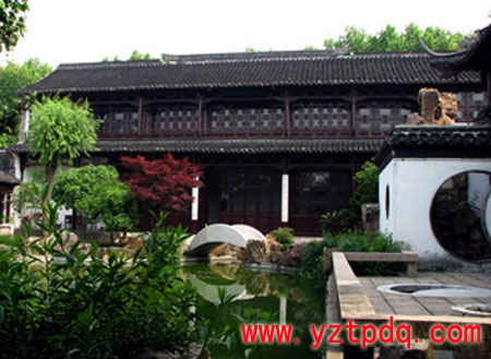 梅溪吟榭在園之角,造型新穎,呈扇面狀,上掛一聯(lián):"荷風送香氣,松月生夜涼"。 至于園中新設(shè)的水池,是否有悖于"旱園水做"的風格,使涵蓄變得直露,尚有待研討。不過,"水"與"月"最有親緣,在以賞月為特色的二分明月樓前加座水池,對游人來說倒也趣味憑添。至于池上建起的月牙橋,對游人來說倒也趣味憑添。至于池上建起的月牙橋,則在色彩斑瀾的揚州各式橋中別具一格,其嬌小秀媚讓人憐愛之至特別是兩片新月形的橋欄,倒映水中,宛若一輪滿月。而且,水池周圍的二分明月樓、迎月樓、夕照樓、梅溪吟榭伴月亭、長廊、假山、花木,渾然一體,相映成趣。