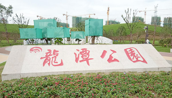 龍?zhí)豆珗@設施齊全、環(huán)境優(yōu)美,園內(nèi)建有各類園林景觀、小品、園路、停車場、綠地等,總面積為123500平方米,其中硬地面積為27700平方米,水域面積23400平方米,配套服務用房建筑面積3780平方米,綠化面積68700平方米。