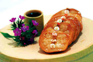 明清時期,寶應(yīng)白蓮藕粉被列為皇室貢品,有“鵝毛雪片”之稱;寶應(yīng)藕菜“蜜餞捶藕”滿譽(yù)江淮,為四方賓客所稱道。當(dāng)時寶應(yīng)名士喜好 藕菜,產(chǎn)生了“全藕席”,室供碗蓮盆景,壁掛荷花詩 畫,席中放一花瓶,以清水插鮮荷花數(shù)朵,色香味具全, 頗具雅趣。當(dāng)今揚(yáng)州的“全藕宴”列為寶應(yīng)十大名菜之首,給您帶來清淡、涼爽、馨香的感受。